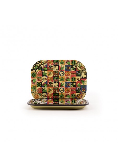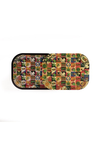 Set per il confezionamento Euphoria Groovy con coperchio magnetico: dimensioni 18×14×2 cm, materiale metallico resistente, design psichedelico e funzionale. Include cover magnetica per mantenere il contenuto al sicuro. Ideale per rollare ovunque con stile.