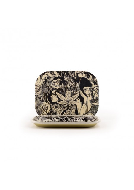 Set da rollaggio Euphoria Mystical con coperchio magnetico e grafica mistica. Vassoio in metallo da 18×14×2 cm con chiusura sicura, ideale per trasportare e preparare in modo ordinato e creativo.