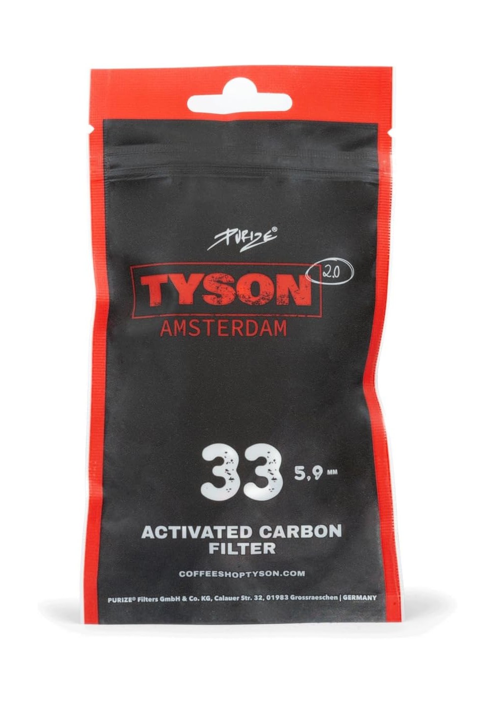 Purize - Filtri con Carbone Attivo - Slim 6mm, 33 filtri - Tyson Edition - Purize