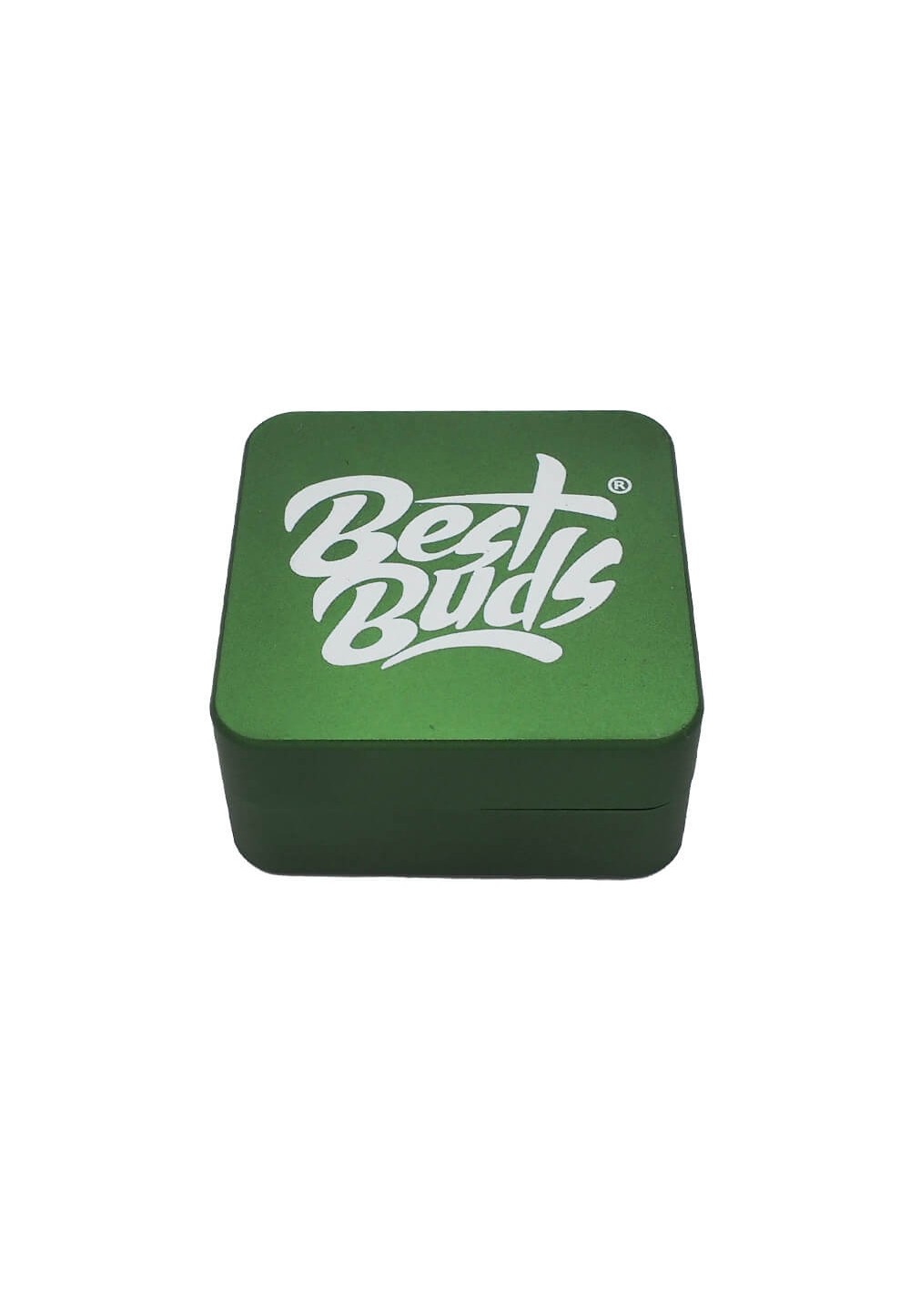 Best Buds Flat Grinder Grass in alluminio, 2 parti da 50 mm, dal design squadrato e compatto. Facile da usare e comodo da trasportare ovunque. Resistente e minimalista.