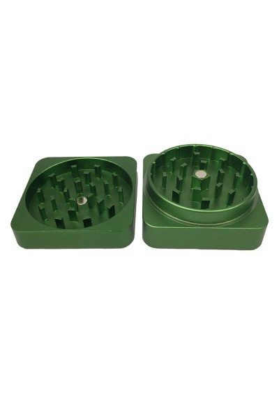 Best Buds Flat Square Aluminium Grinder Grass 2 Parts 50 mm - Accessori, Grinder - Best Buds
